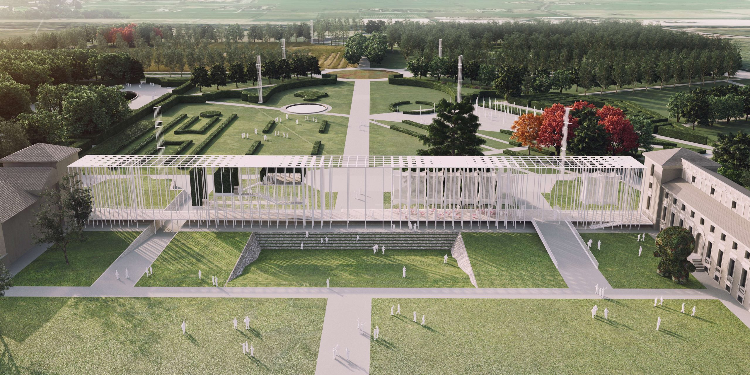 Il progetto del Parco della Reggia di Rivalta si sviluppa in un duplice gradiente narrativo, temporale – dalla dimensione storica all’attualità – e paesaggistico – dai parterre barocchi, alle linee funzionali delle siepi e delle sedute del giardino contemporaneo – con la decostruzione del disegno originale, dando vita ad una visione contemporanea di un parco che adempia alle necessità pubbliche attuali, in aperto dialogo con il paesaggio circostante.